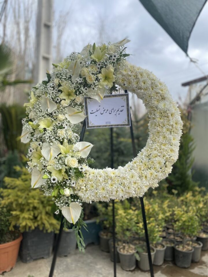 💐 تاج گل درباری تسلیت با طراحی خاص و گلهای باکیفیت، یک انتخاب مناسب و محترمانه برای مراسم سوگواری شما خواهد بود. 🌸
