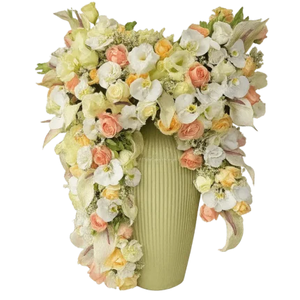 جام گل تسلیت مدل سناتور با ارتفاع ۱۱۰۰ سانتیمتر، طراحیشده با ترکیبی متوازن و باشکوه از ۲۰ شاخه گل اصلی، ۱۰ دسته داوودی و ۳ دسته آلستر. این ترکیب با رنگبندی ملایم و چینش حرفهای، جلوهای آرامشبخش و محترمانه برای مراسمهای ختم، بزرگداشت و ابراز همدردی ایجاد میکند.